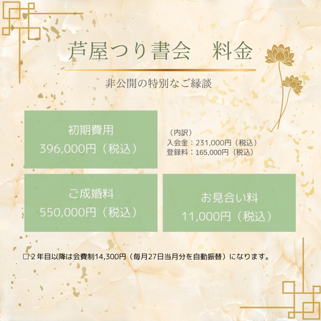 ※非公開のご縁組みという特性を考慮し、適正なご入会金を設定しておりますので、ご理解の上お申し込みください。